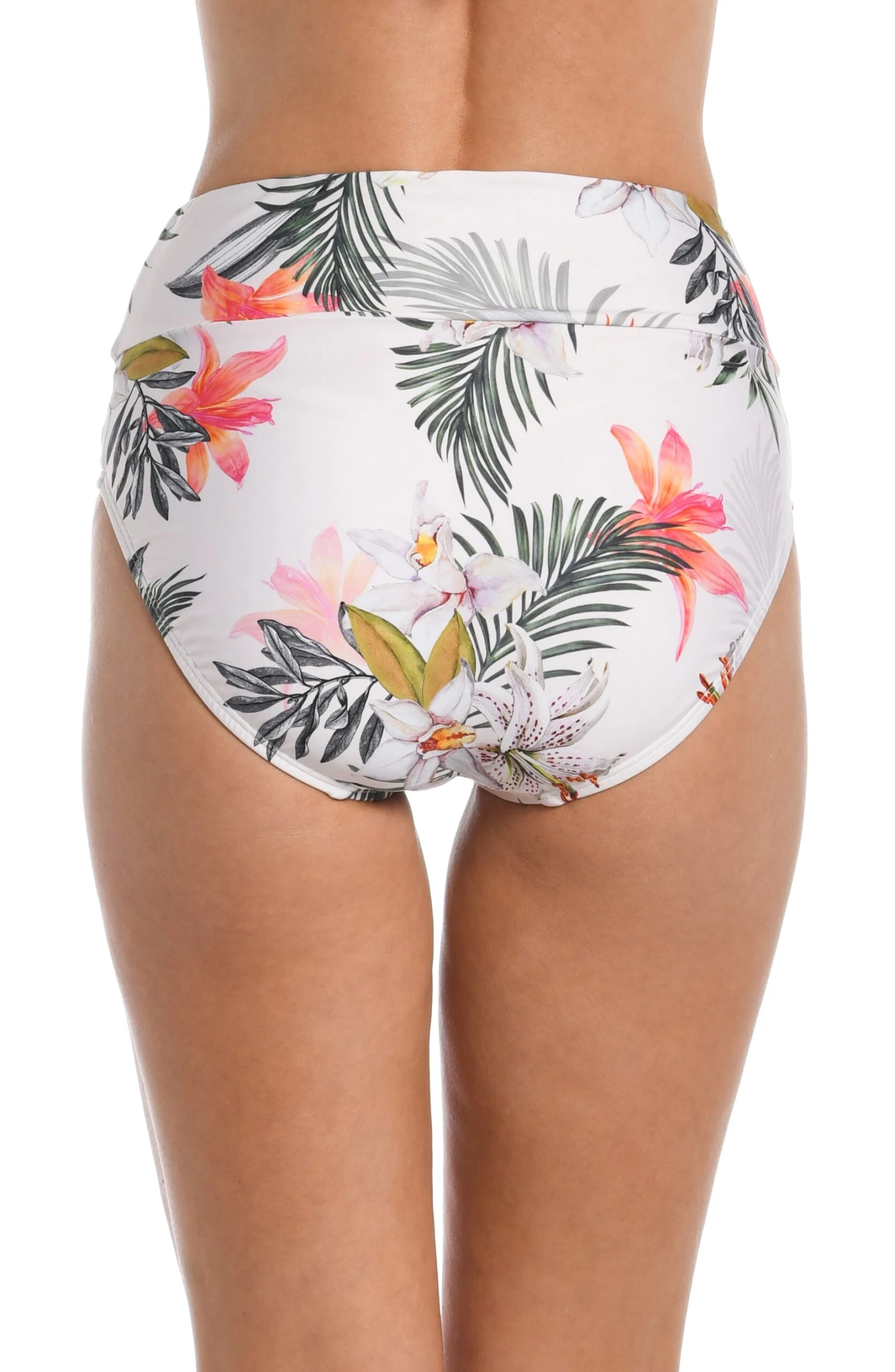 This beautiful floral printed, high-waist spliced pant with powernet is an ideal swimwear if you are looking for full rear coverage. The discreet powernet panel gives you a more secure and confident feel. The high waist also enhances tummy control. You will be more relaxed and comfortable throughout the beach day.
