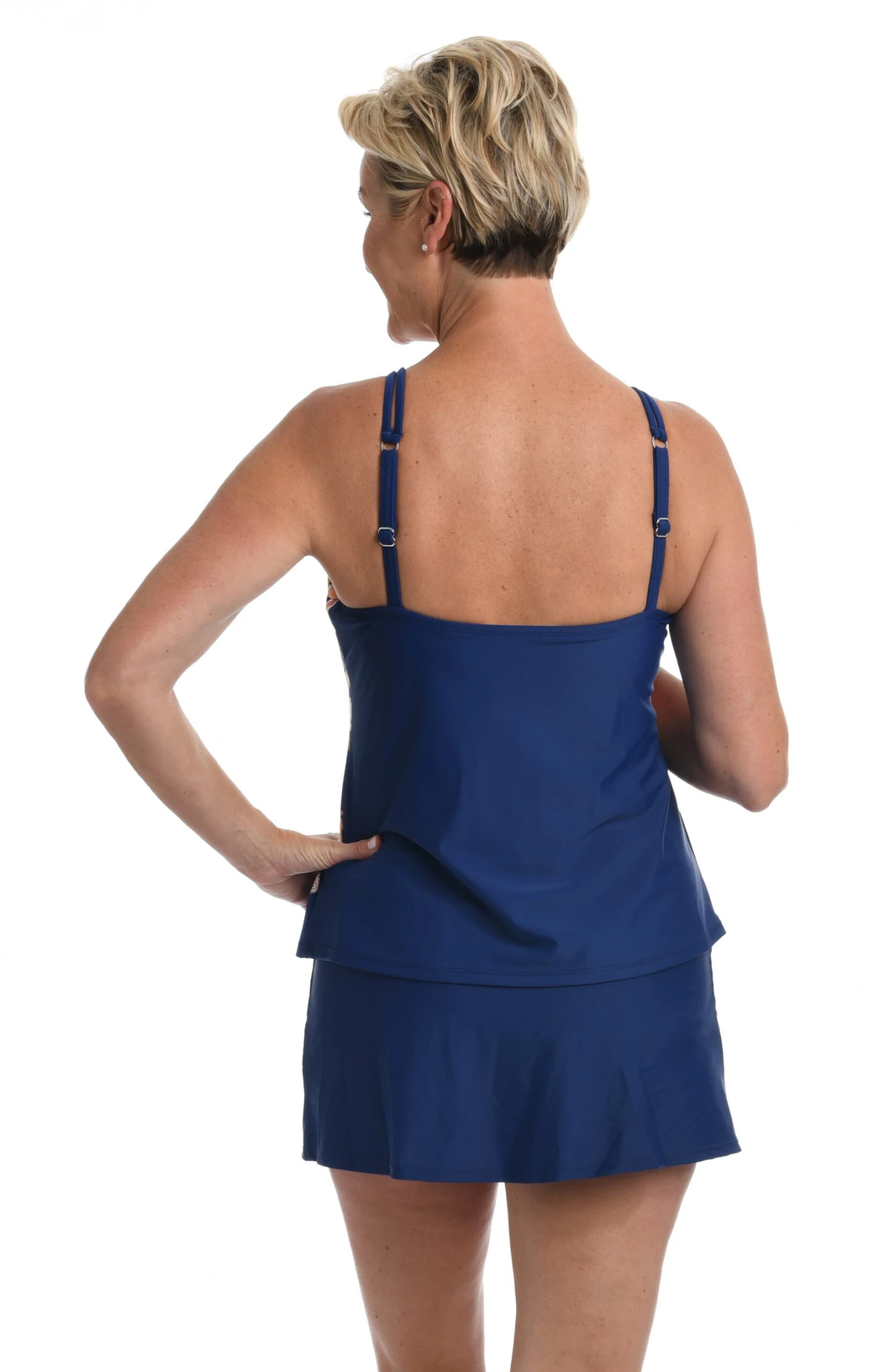 Simply stunning, this tankini pairs a field of gorgeous blooms with geometric motifs for undeniable style. The high-neck design showcases your shoulders, drawing the eye upward to create a balancing effect. Removable cups with underwires and adjustable straps provide plenty of support.