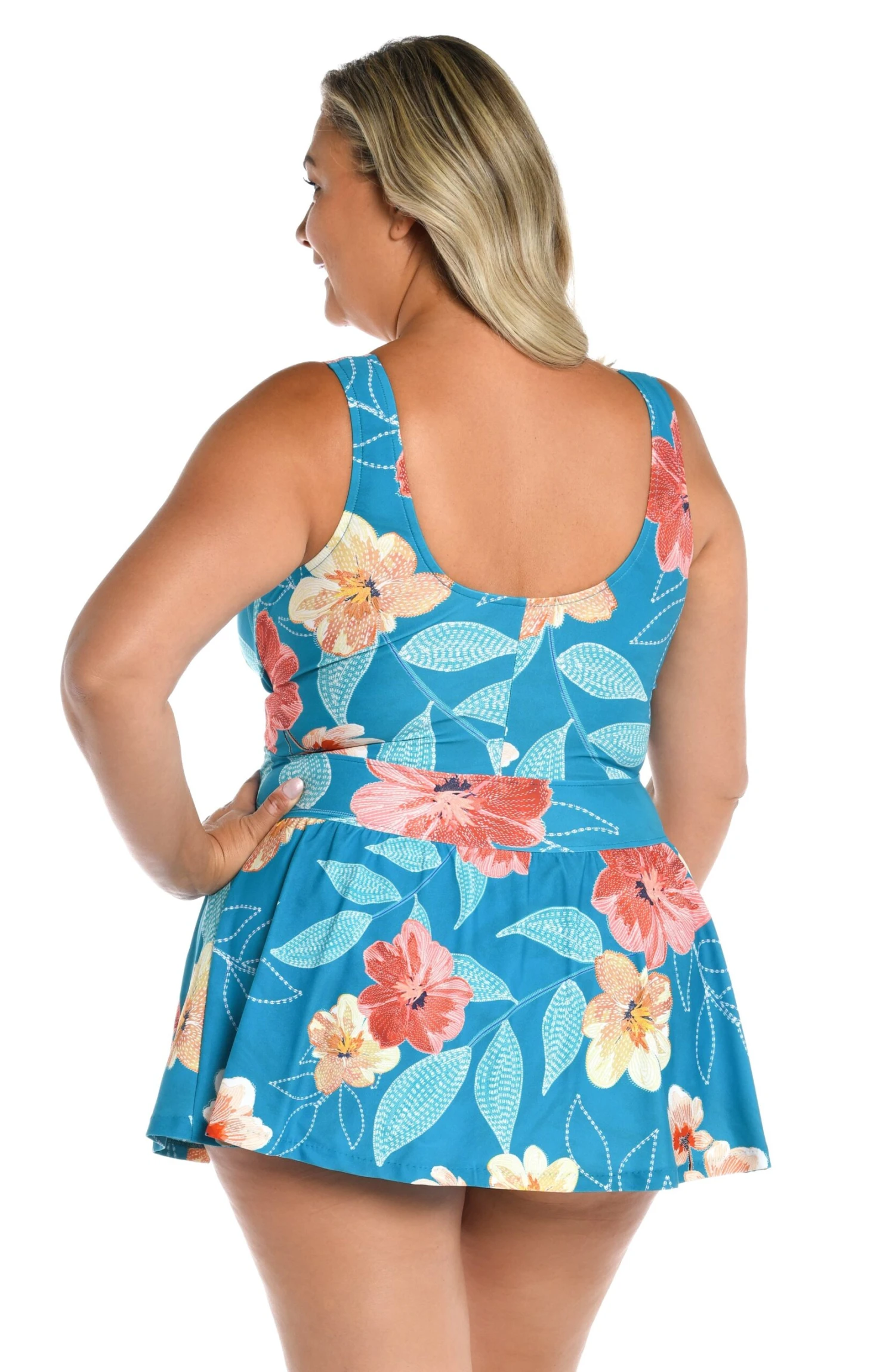 Bold botanicals bring tropical-inspired flair to this plus-size one-piece swimsuit. The empire cut instantly slims the figure, hitting above your natural waist to create a free-flowing fit that provides ample coverage all the way around. Fixed straps and built-in cups offer comfortable support.